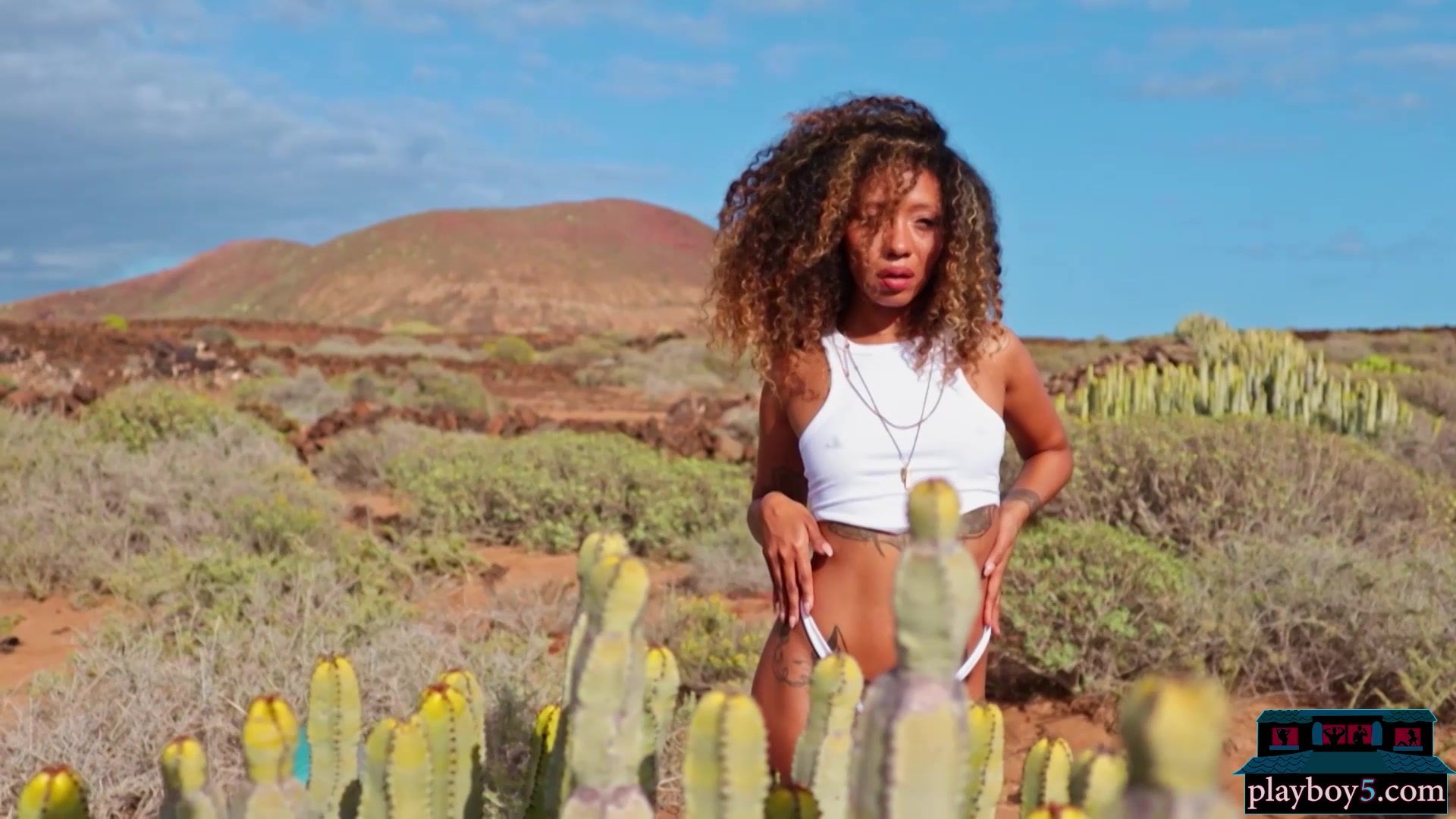 Hot black latina MILF Jossa Nova outdoor striptease fun together with Playboy showing off all her ass sets and looking stunning! This dark skin babe from Venezuela has everything in the right place and does not mind to show us all!
