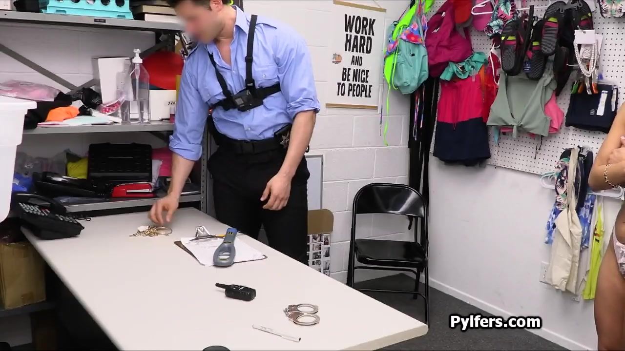 Beautiful long hair and big juggs. Joe the security guard can't take his eyes off this gorgeous Latina. He really wants to fuck her spicy pussy!