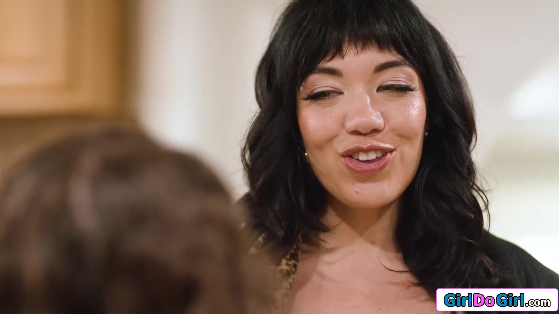 Busty stepmom Little Puck forgot she still had her strapon on ifo her virgin stepdaughter Leana Lovings.The petite teen wants the milf to be her first.After they kissed the big tits cougar licks her pussy.Leana rides the toy and rims her stepmommy
