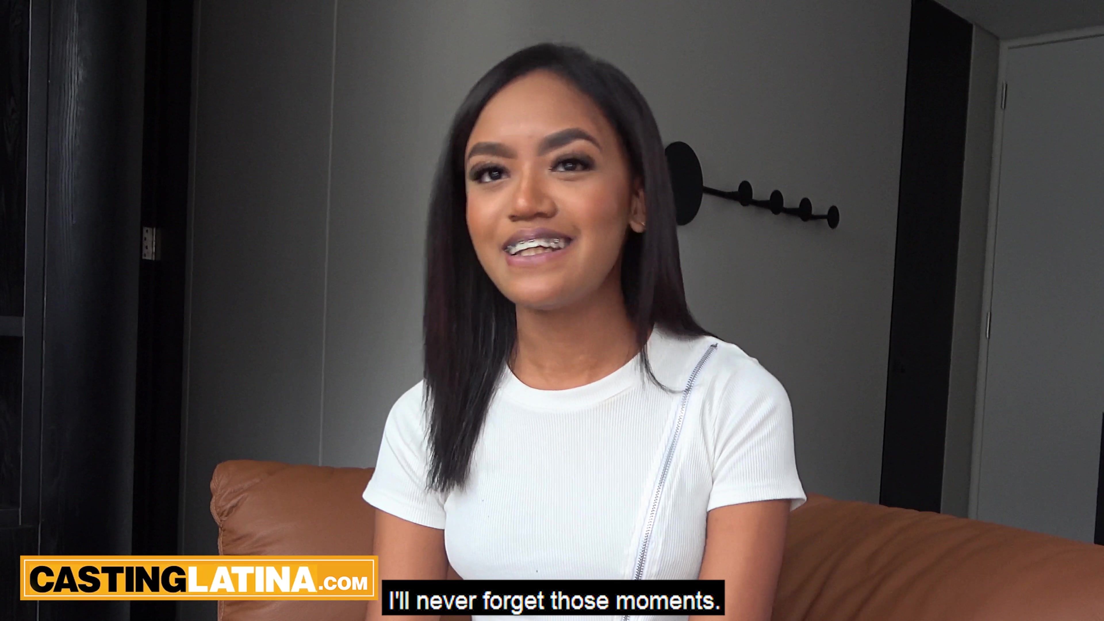 Petite amateur latina ebony teen Little Ravenna with tiny tits is introducing herself on the casting couch then she has to show her skills on the producers big dick to get a job She is tasting his big dick then he is fucking her exotivc pussy and ass
