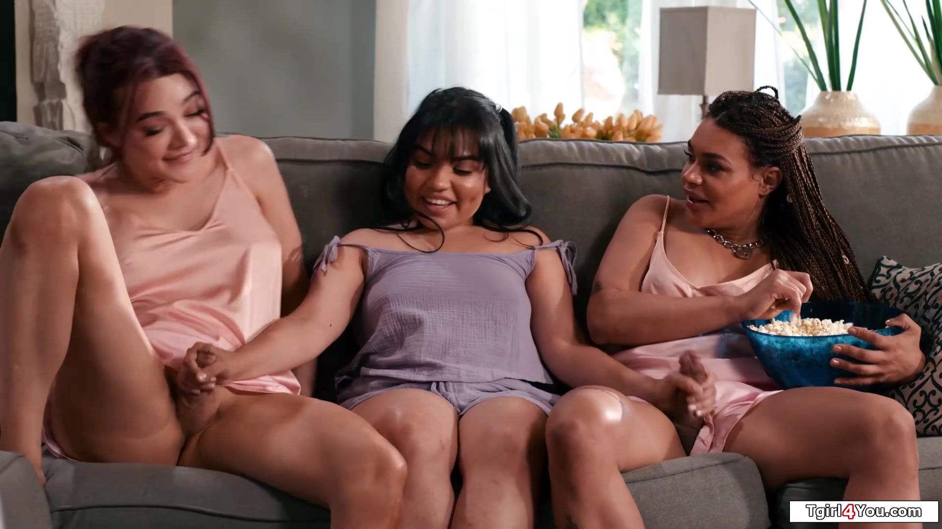 Petite latin Summer Col jerks off shemale gfs Eva Maxim and Emma Rose.The busty redhead tgirl is sucked off by the big cock trans who also gets a blowjob.The small tits latina is licked and gets double penetrated by the horny big boobs tranny babes