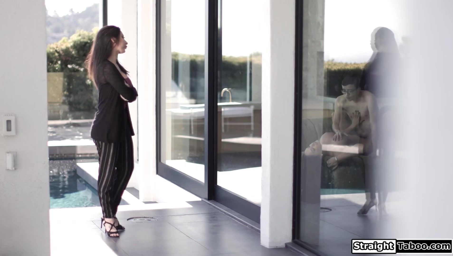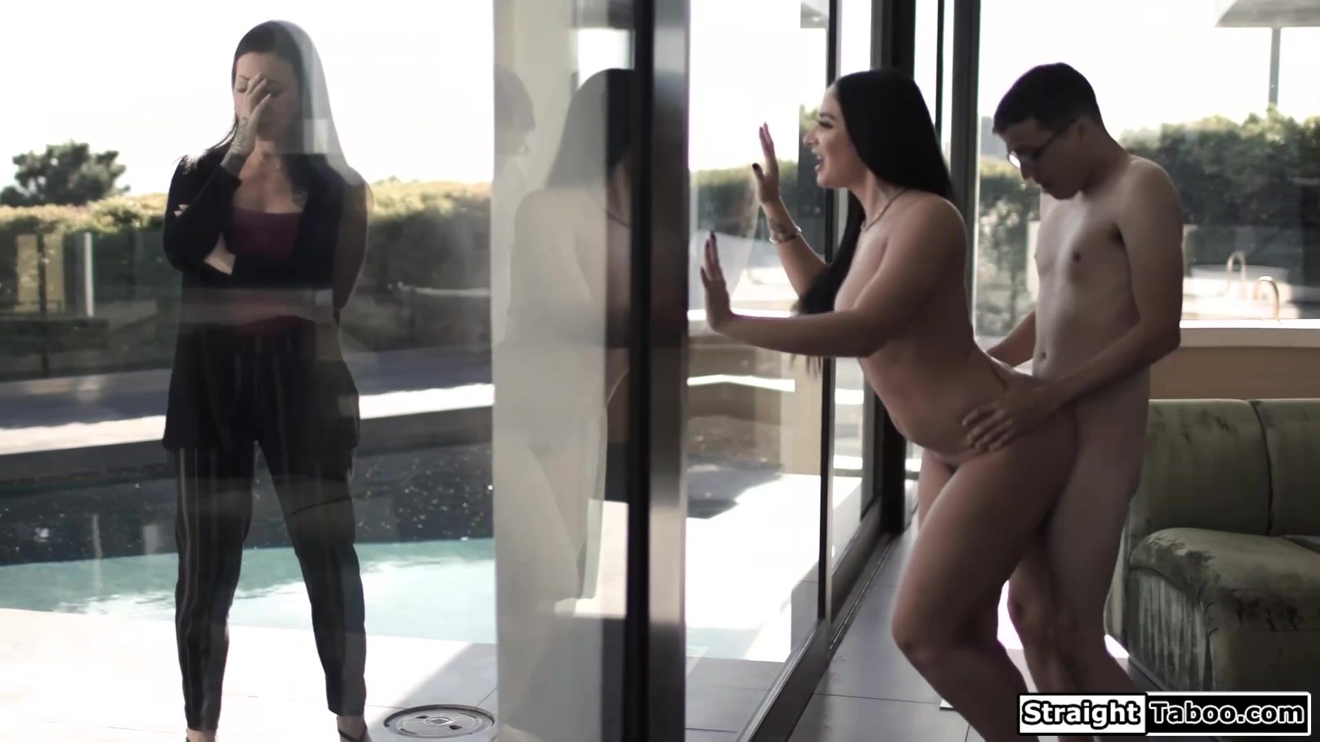 Latina Lily Lane sees milf wife Sheena Ryder kissing her teen neighbor and taking his dick out.The busty brunette lets her watch through the window how she gets doggystyle fucked.In awe she sees the big tits cougar suck and getting her pussy licked