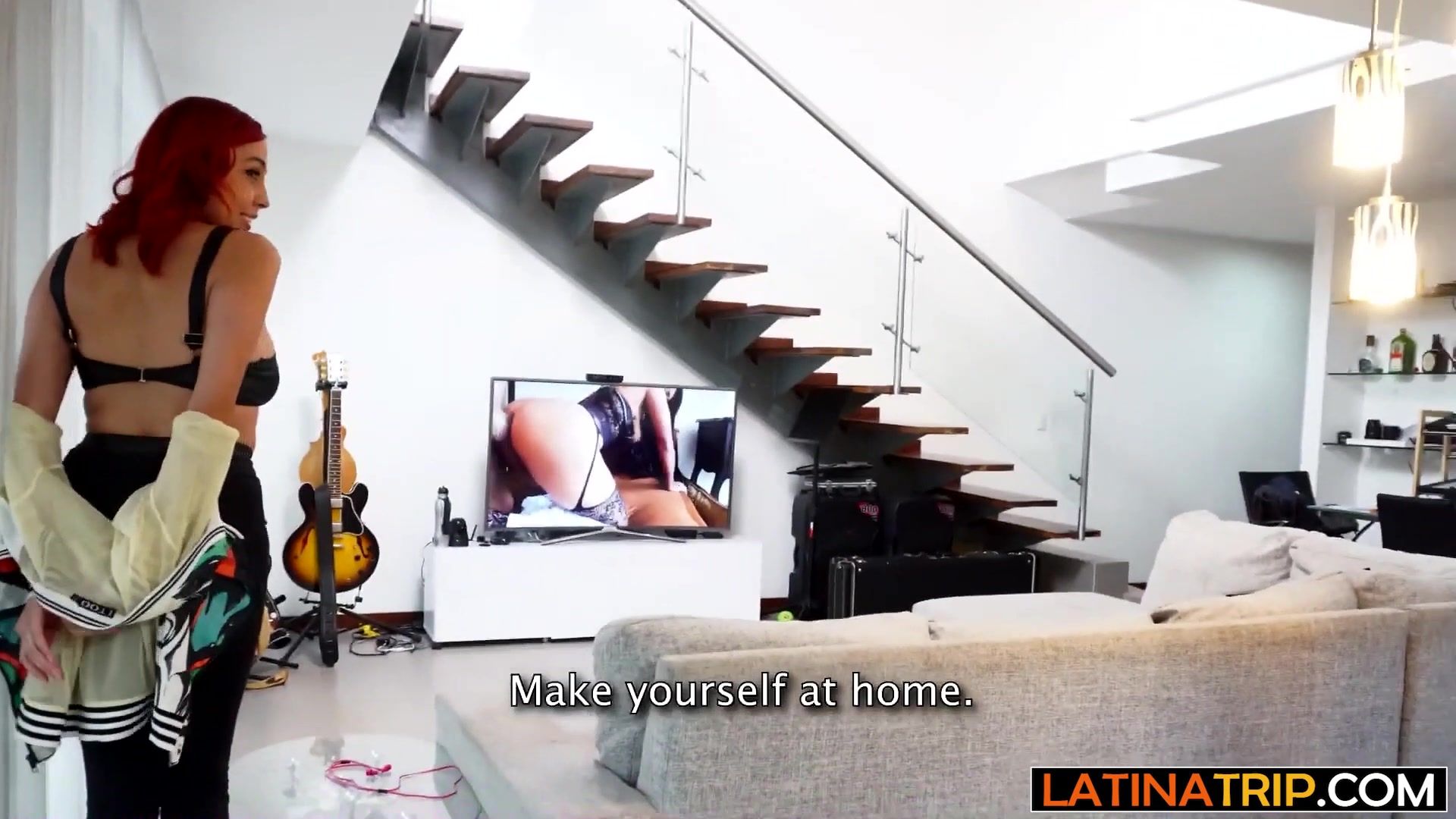 Red amateur latina teen cleaning lady Loret anal fucked roughly by landlord