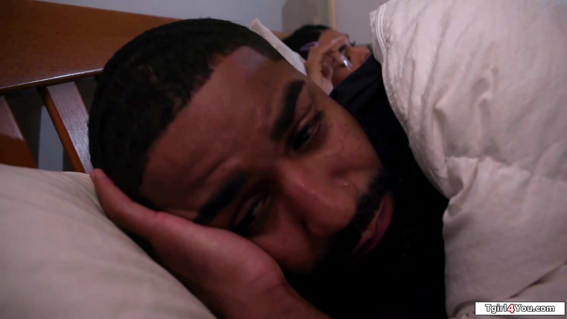 Busty trans sisterinlaw Eva Maxim doesnt mind being in the same bed.Hes shocked when the tgirl gets fully naked.The big tits latin tgirl is willing to suck off his big black cock and after she got her tranny dick deepthroated he anal barebacks her