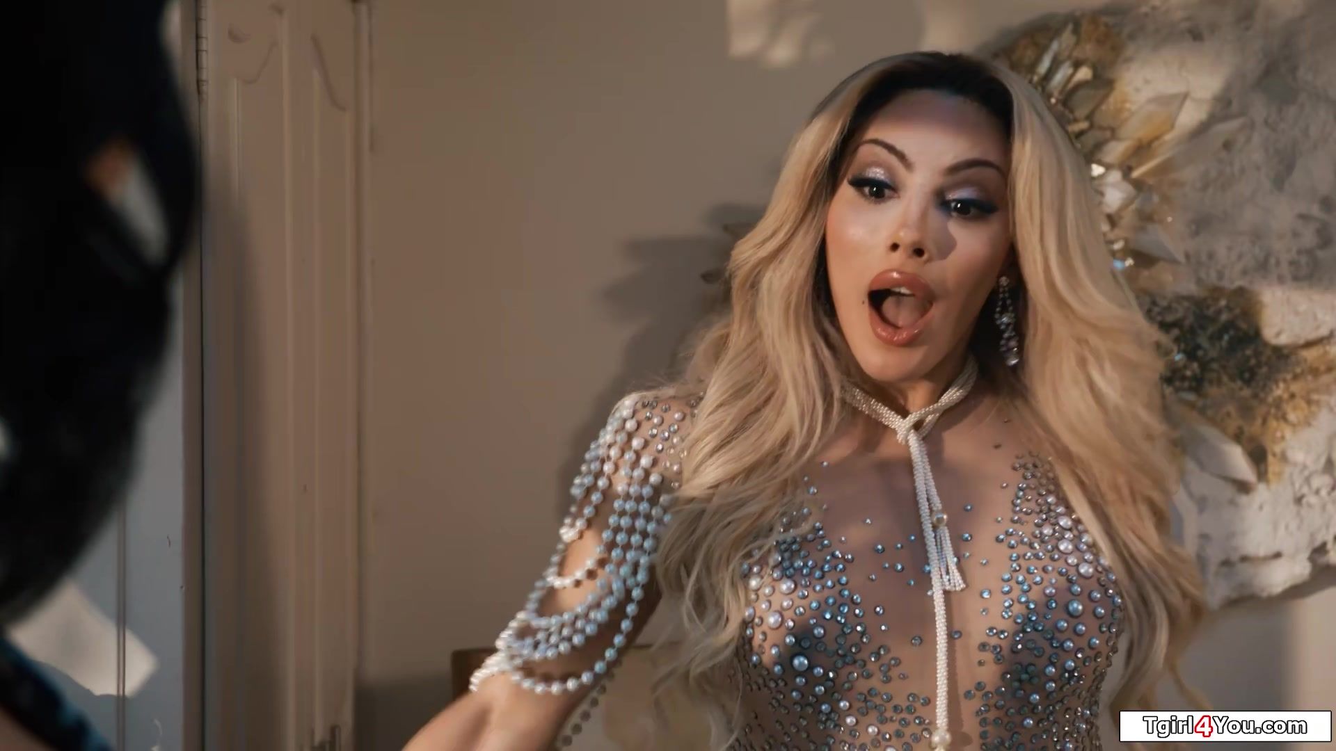 Busty latin shemale fairy Ariel Demure pops out of a diamond