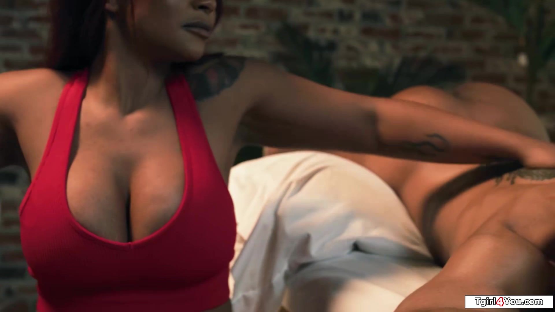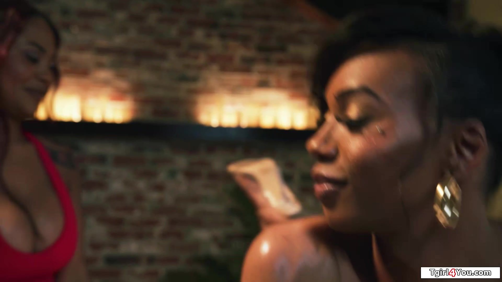 Do you two tgirls perhaps want a blowjob with your massage?Masseuse Avery Jane assfingers shemales Ariel Demure and Leilani Li after an ass massage and sucks their tranny cocks.The busty ebony trans licks pussy and fucks her ifo her redhead ts gf