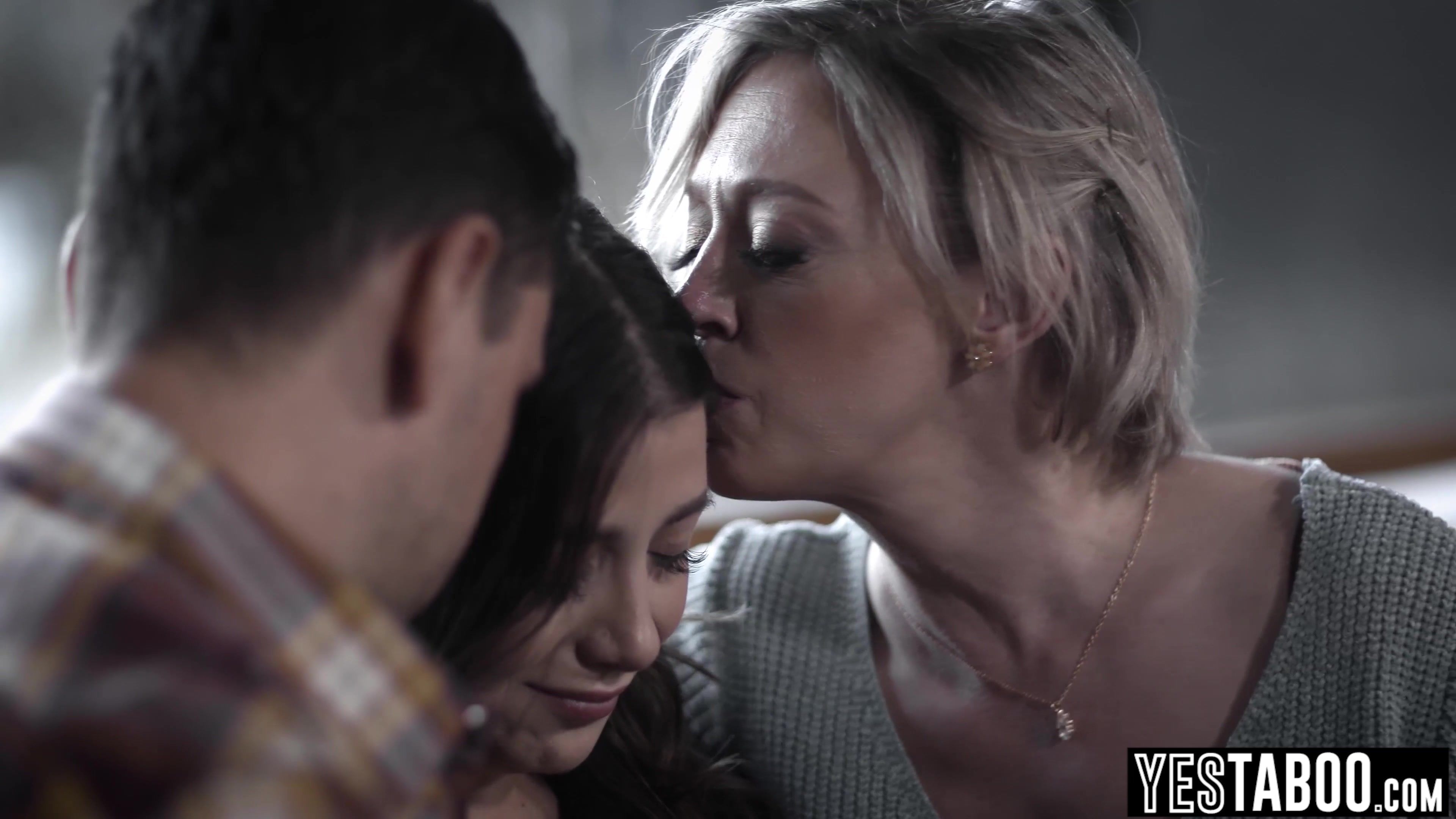 Big boobs curvy BBW MILF Dee Williams and her husband seduce their friends petite Latina stepdaughter Natalie Brooks and strip her naked before the hubby throatfucks them both with his big dick and rails them all roughly in a hardcore threesome!