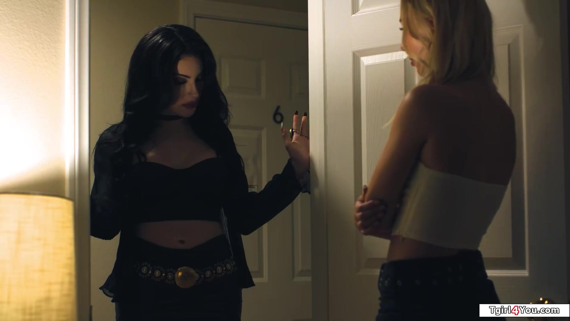 Braylin Baileys busty shemale friend Ariel Demure has been turned into a vampire.The big tits latin tgirl will turn her as well so they can be together.The latina trans gets her big tranny dick sucked and licks her gfs pussy before she fucks her