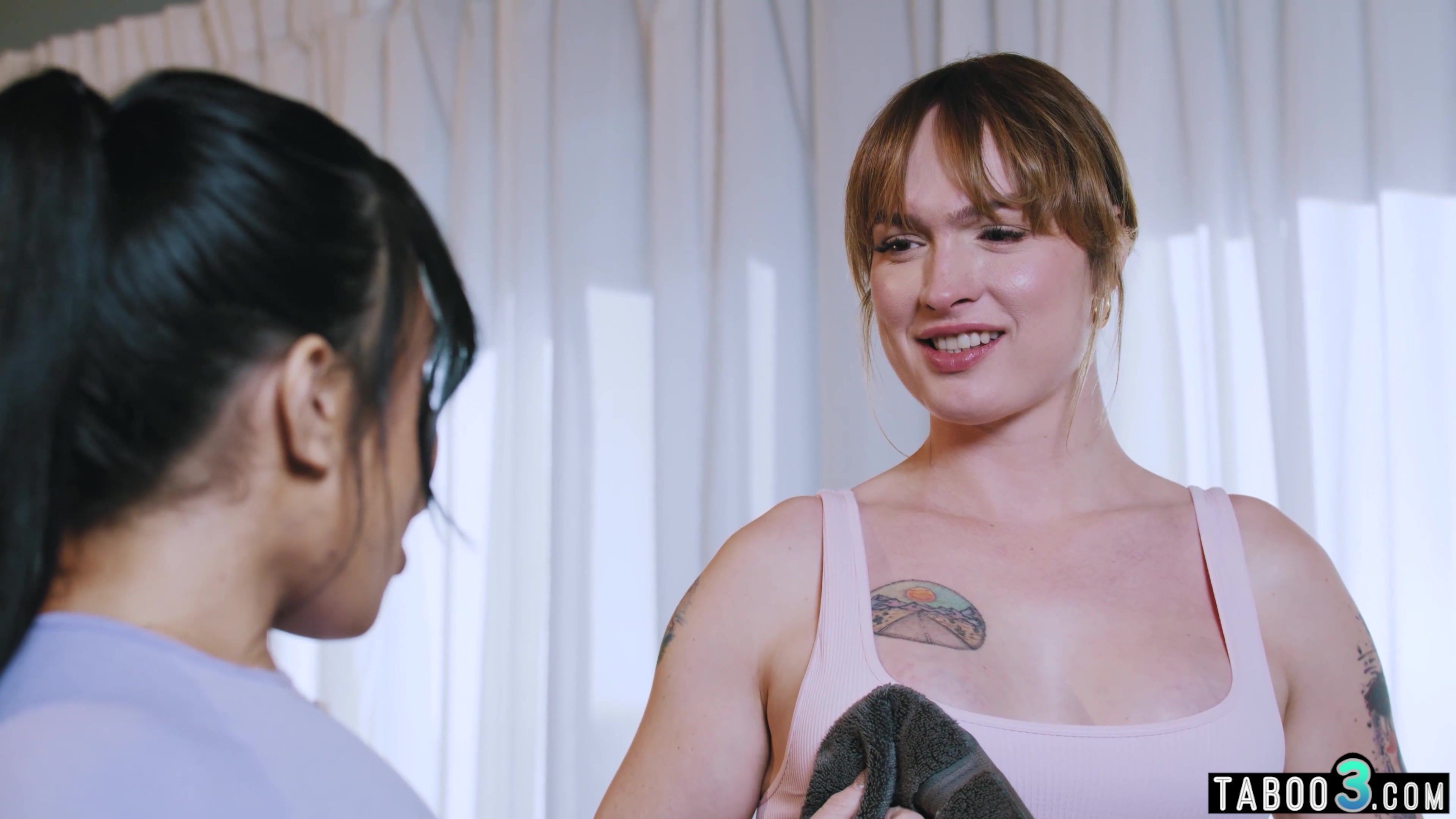 As they chat and wipe themselves down with the towels there are more hints of attraction between them Summer is amused and invites Blake to have sex with her to unwind