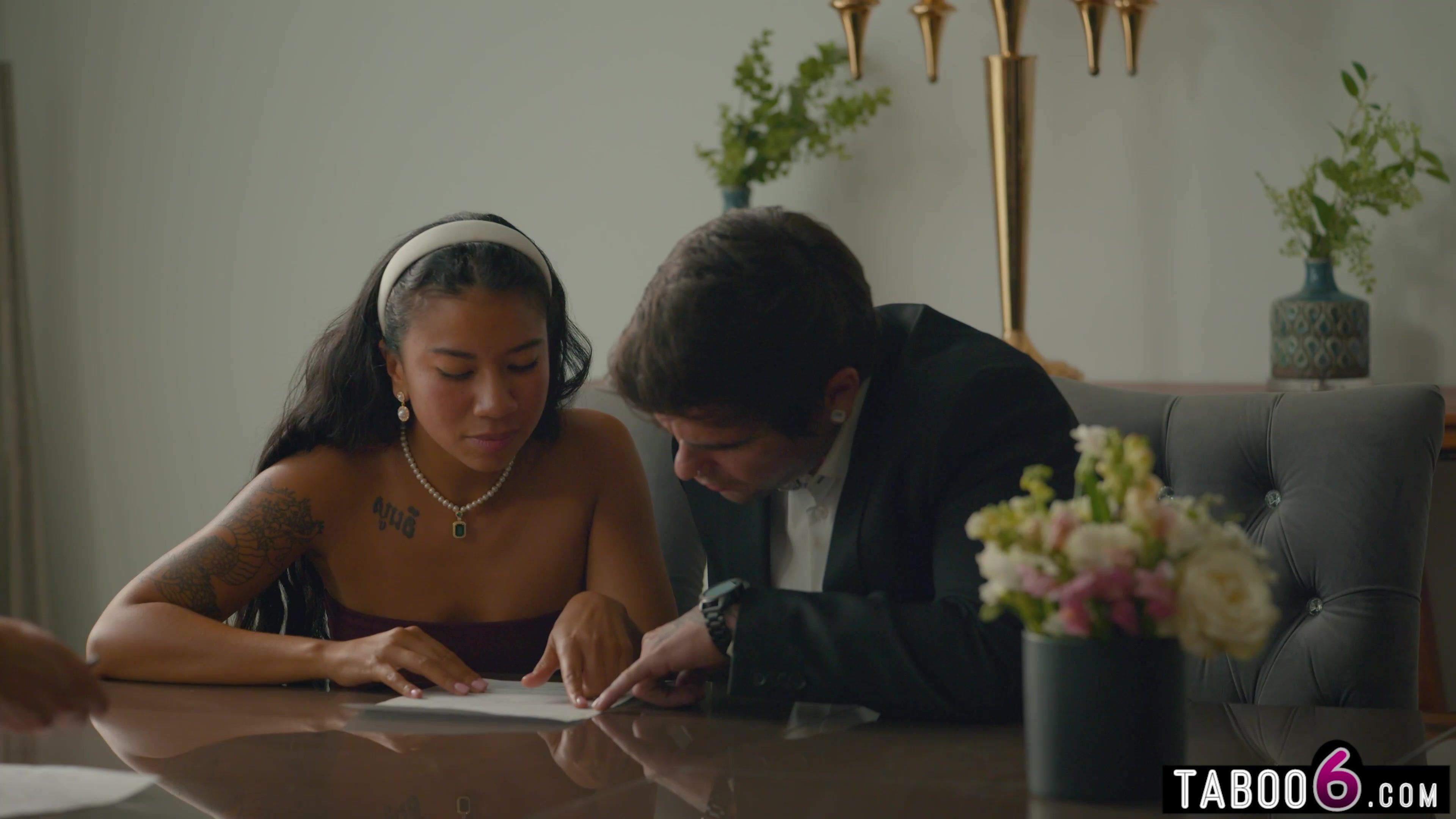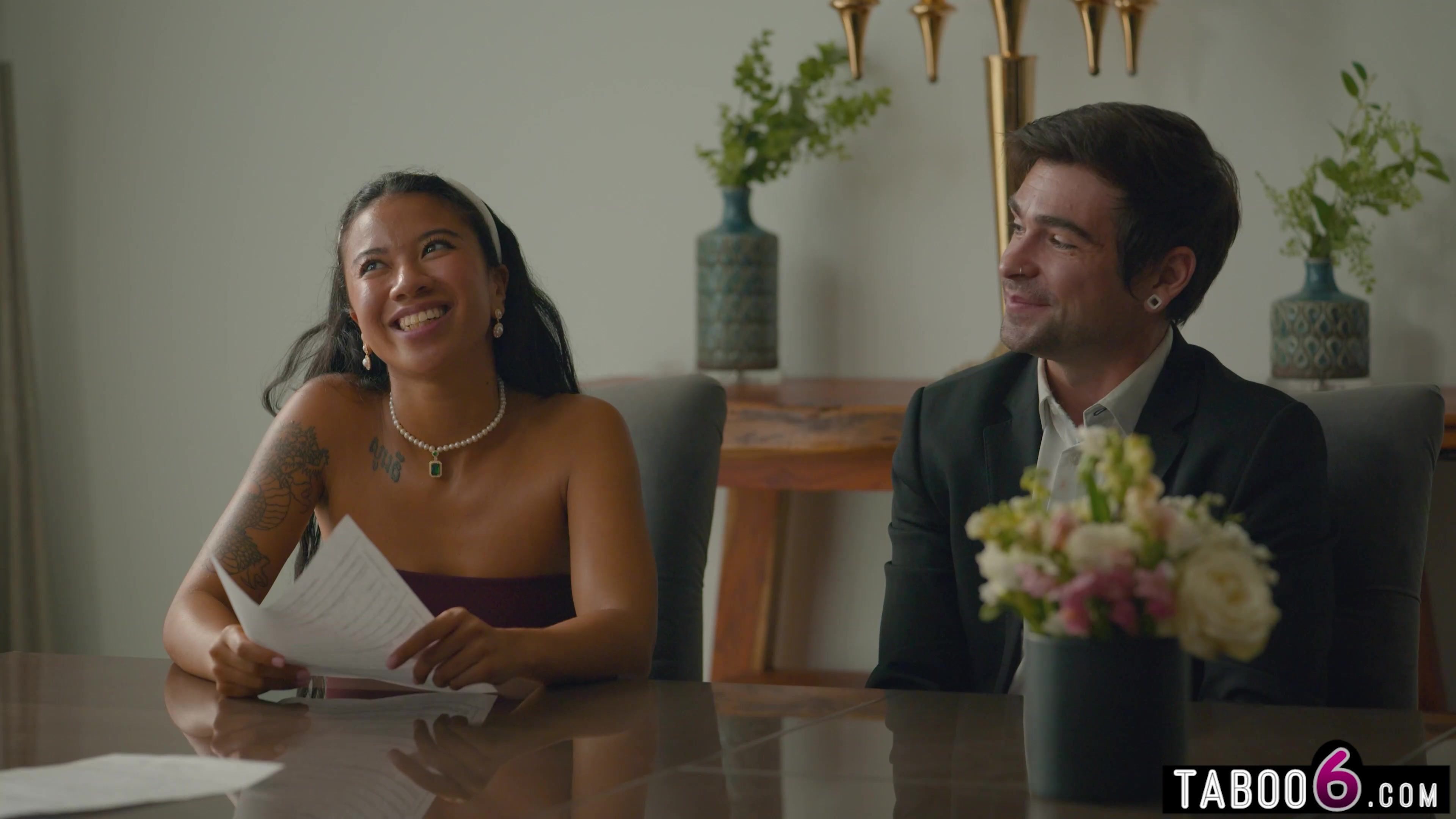 Bride and groom to be fuck shamelessly in front of witnesses and the bride is big ass latina babe Gizelle Blanco who is looking so fine in that dress I would marry her too! WOW! I can see why Codey Steele could not keep his hand off of her!
