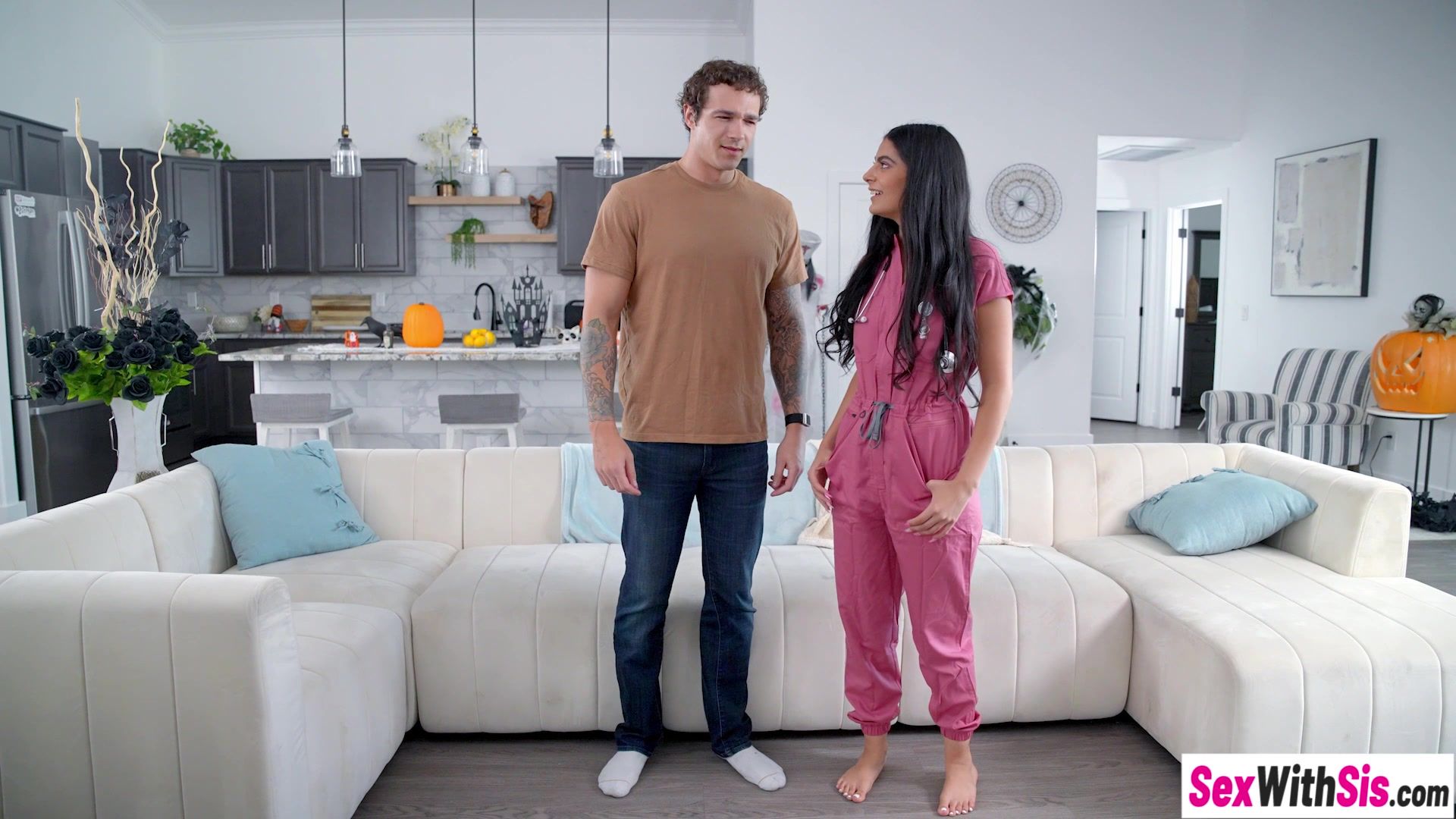 Latina stepsister kinky Haloween fucking and teen enjoyed stepbros dick after horny babe gave him a blowjob Horny teen stepsister treats stepbrother big dick After blowjob hot teen pounded her bubble butt on that big cock and enjoyed hardcore sex
