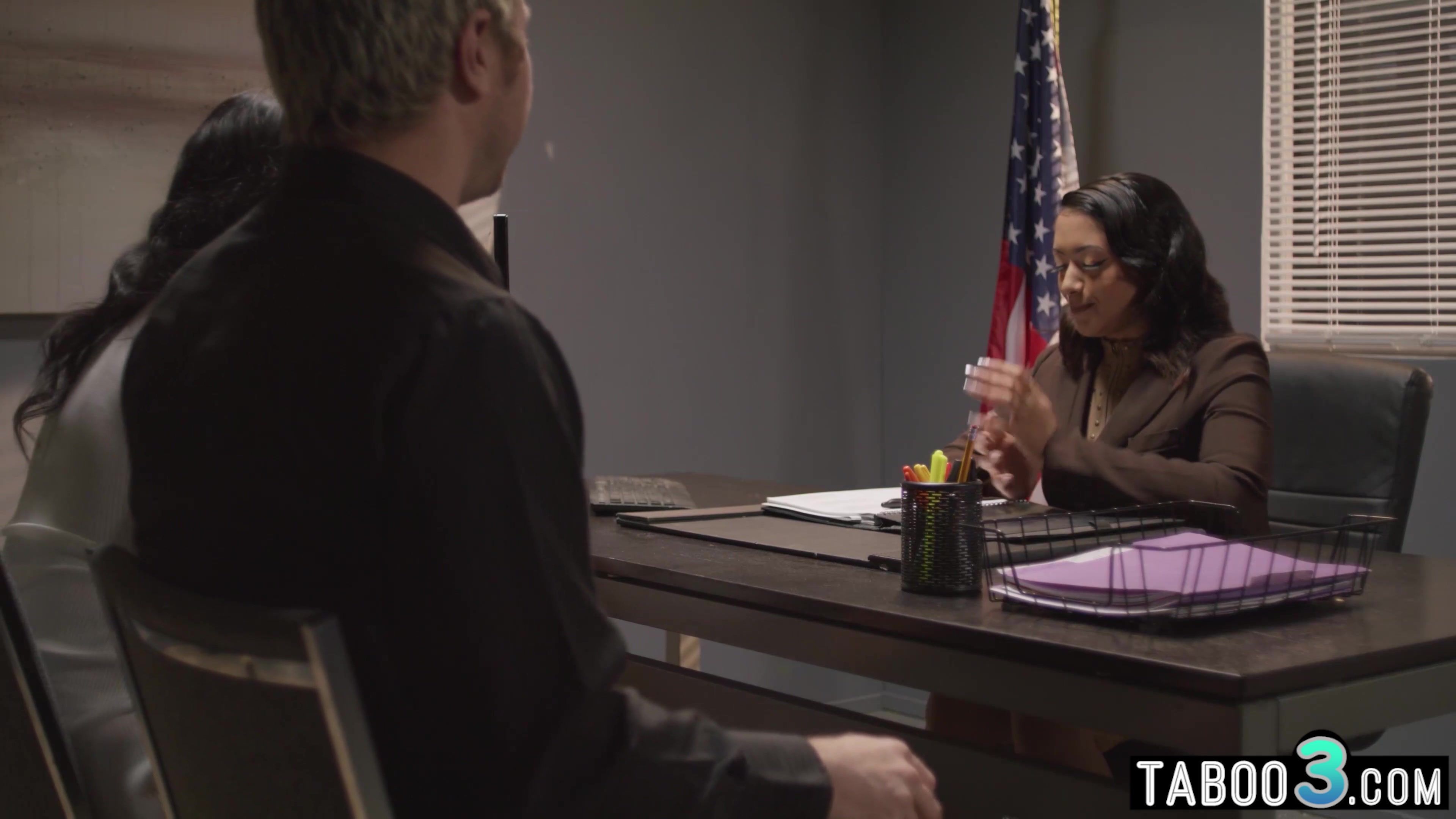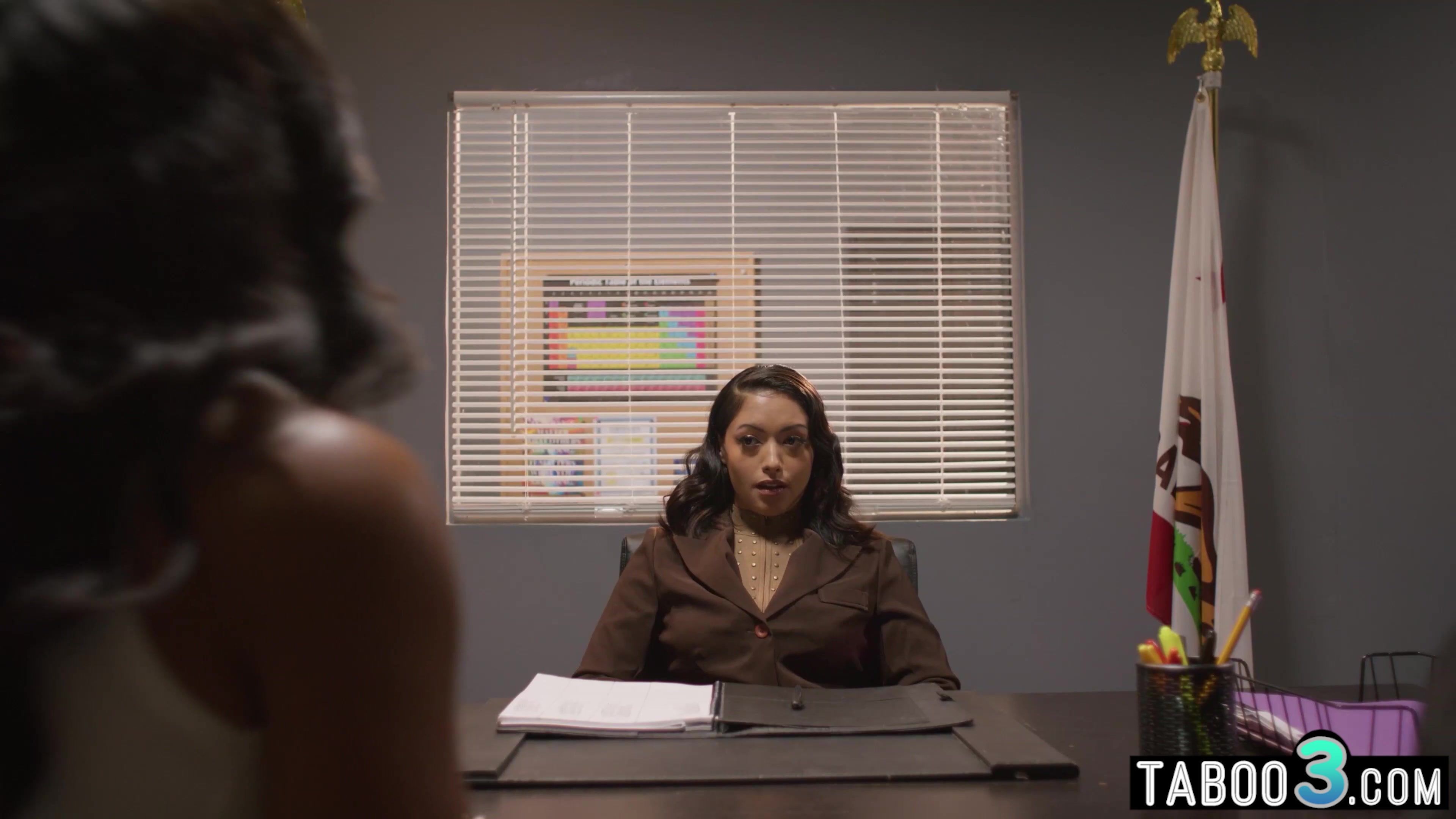 Ebony MILF August Skye and hubby are confronting with the latina teen guidance counselor Princess Emily who refuses to give out the confidential information so the naughty bisexual slut has to choose a unique way so she lures her into threesome sex