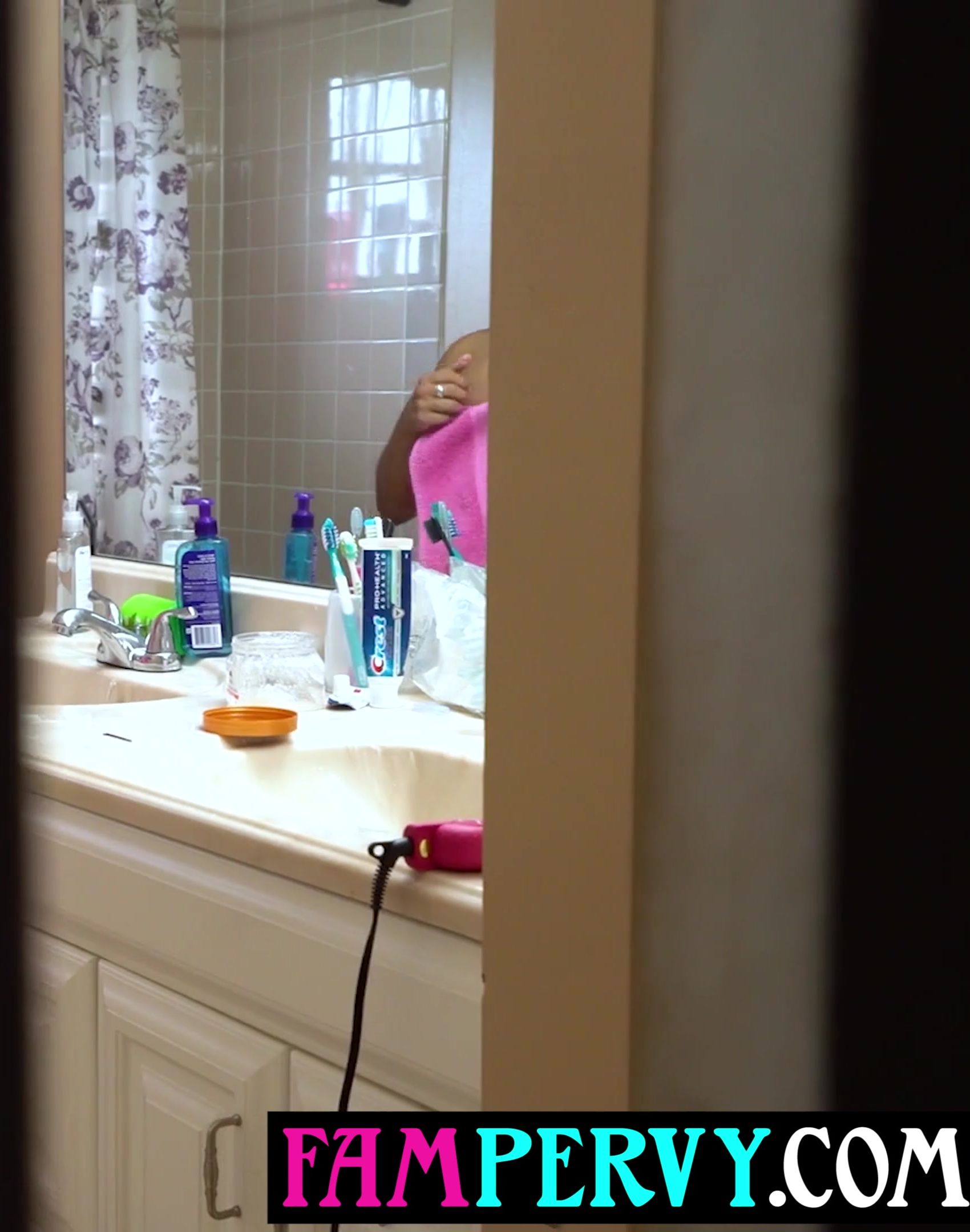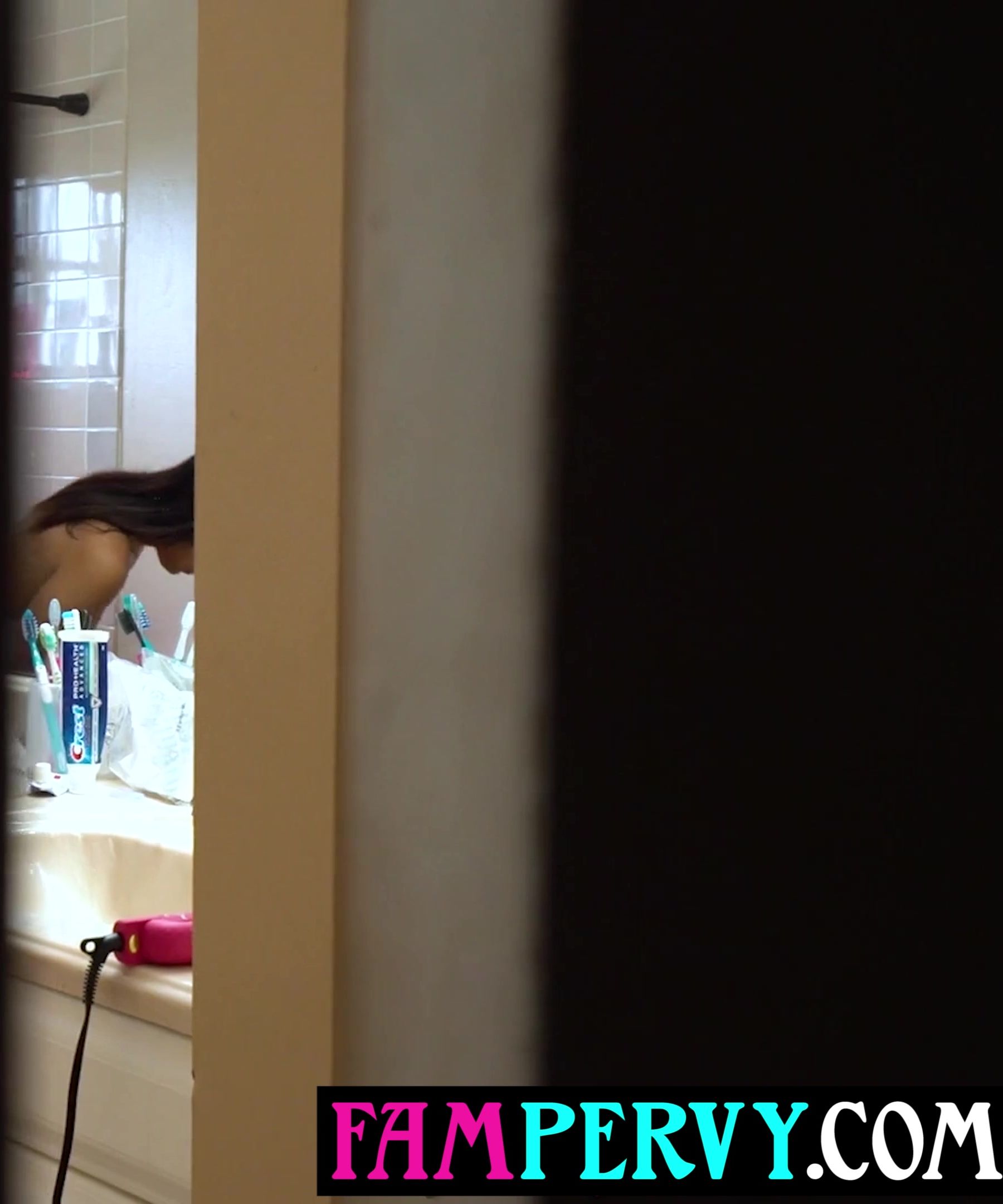 Stepbro barges in on showering Latina MILF stepsis and rails her