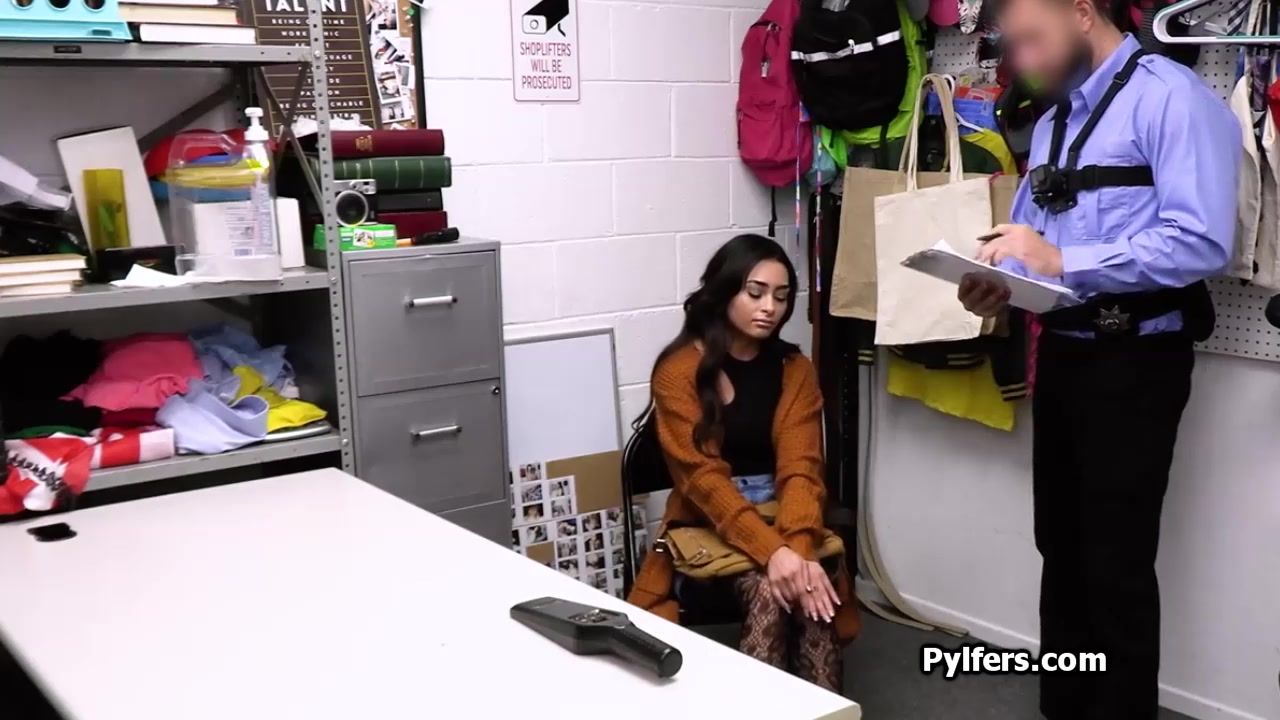 Will the security guard strips down this lovely busty Latina teen.... looking for stolen stuff. But he quickly moves to please her tight pussy!