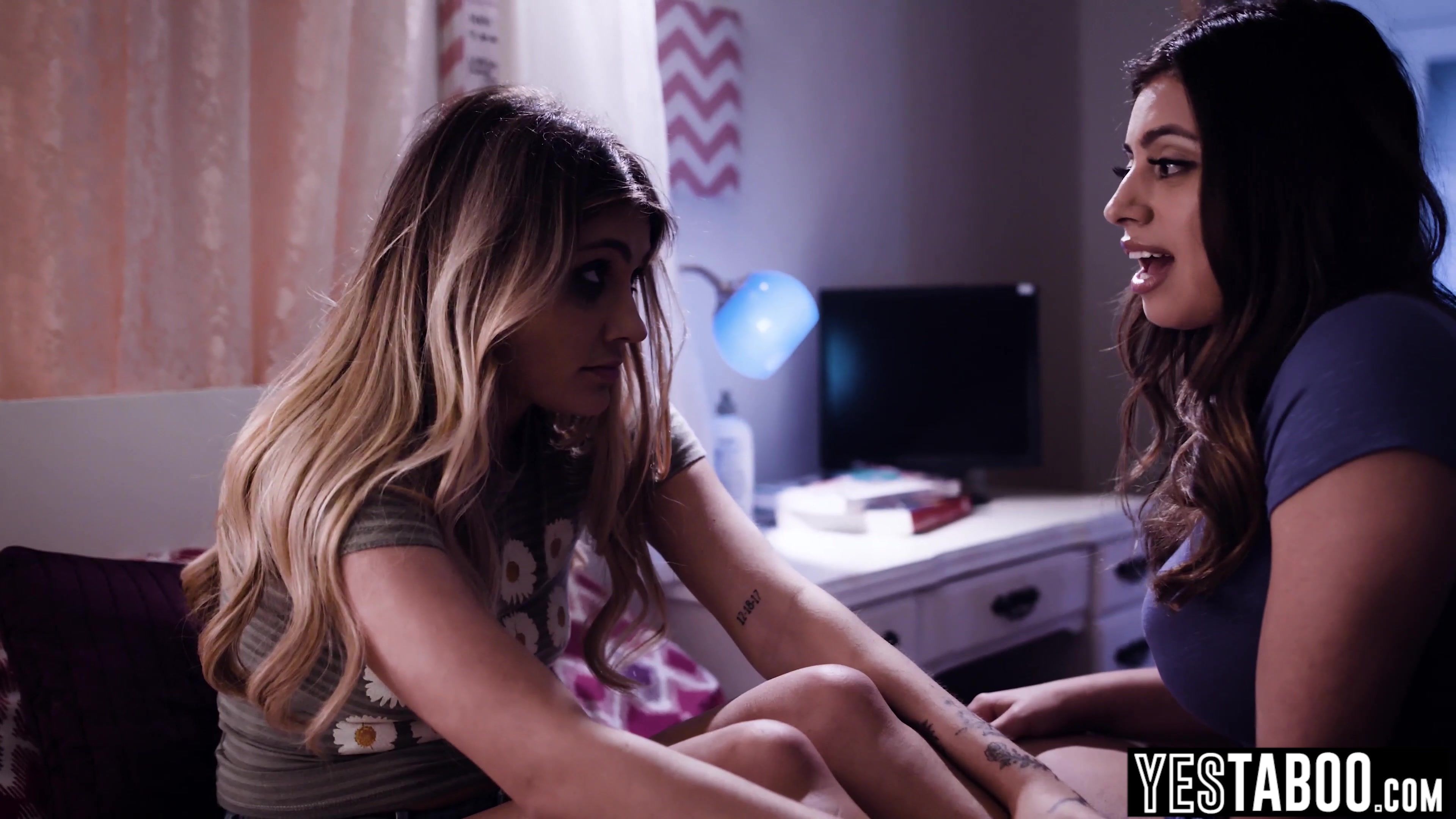 Big boobs curvy Latina MILF Ella Knox convinces her petite stepsister Adria Rae to join her in a foursome with their big dick stepdad and big tits mature stepmom Alexis Fawx and get started as they all blow his big dick and get their hairy pussies pounded